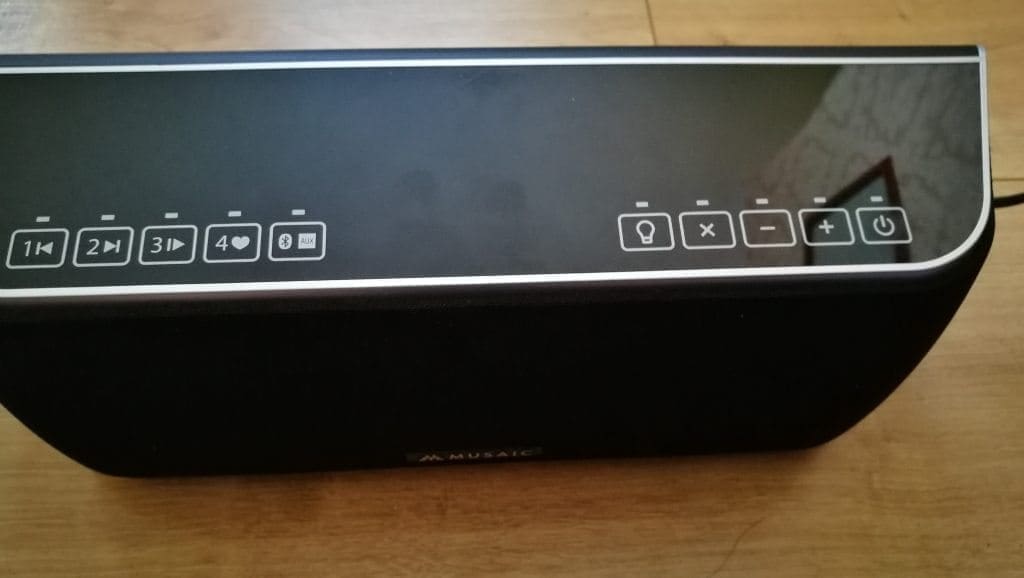 With 10 touch-sensitive top-panel buttons emulating smartphone icons that include power, volume and mute in the right bank and play controls to the left, which also double up as memory recall buttons. There’s also a heart-shaped ‘like’ icon and light bulb symbol, revealing how the Musaics are also designed to work with streaming services and smart home lighting systems.